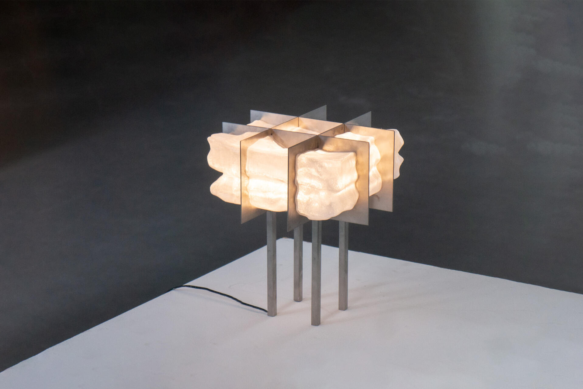 This bachelor’s project explores how natural erosion can be integrated into a design process, investigating ideas of natural beauty, timelessness, and the role of aesthetics in functional objects.To do this, I developed a method using hardened sugar and running water to simulate the conditions that shape bedrock into organic formations. Through this process, a series of ten unique forms were created.These forms were then 3D scanned and translated into the design of a table lamp, showcasing how the erosion process can be applied in the development of a functional object